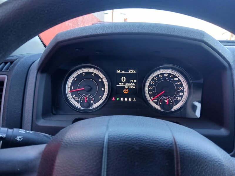 This 2014 Ram 1500 Tradesman is equipped with the factory 5.7-liter HEMI V8, rated at 395 horsepower and 407 lb-ft of torque. The HEMI V8 features the Multi-Displacement System (cylinder deactivation) to help balance performance and efficiency for highway cruising and work duty.